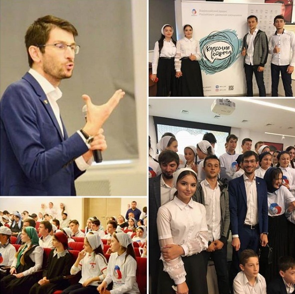 17.09.2019Активисты РДШ нашей школы приняли участие в организованной встрече учащихся 55 школ региона с абсолютным победителем Всероссийского конкурса "Учитель года России-2018" Алиханом Динаевым.