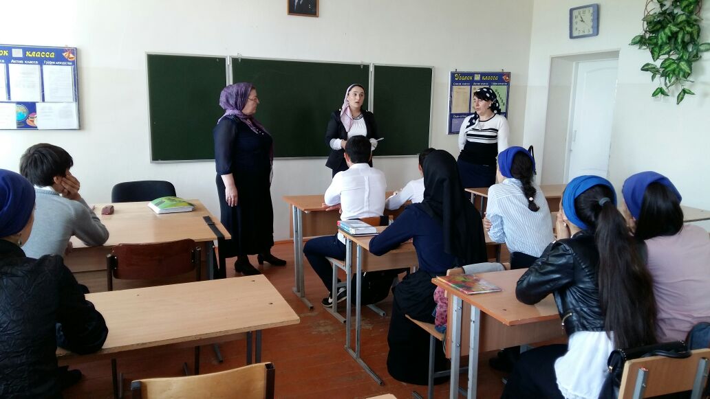 20 апреля 2016 года состоялась встреча преподавателей ГБПОУ «Грозненский технологический техникум сервиса» Чидиговой Айшат Юсповны и Байсаровой Сациты Изадиевны с учащимися 9 – 10 классов.