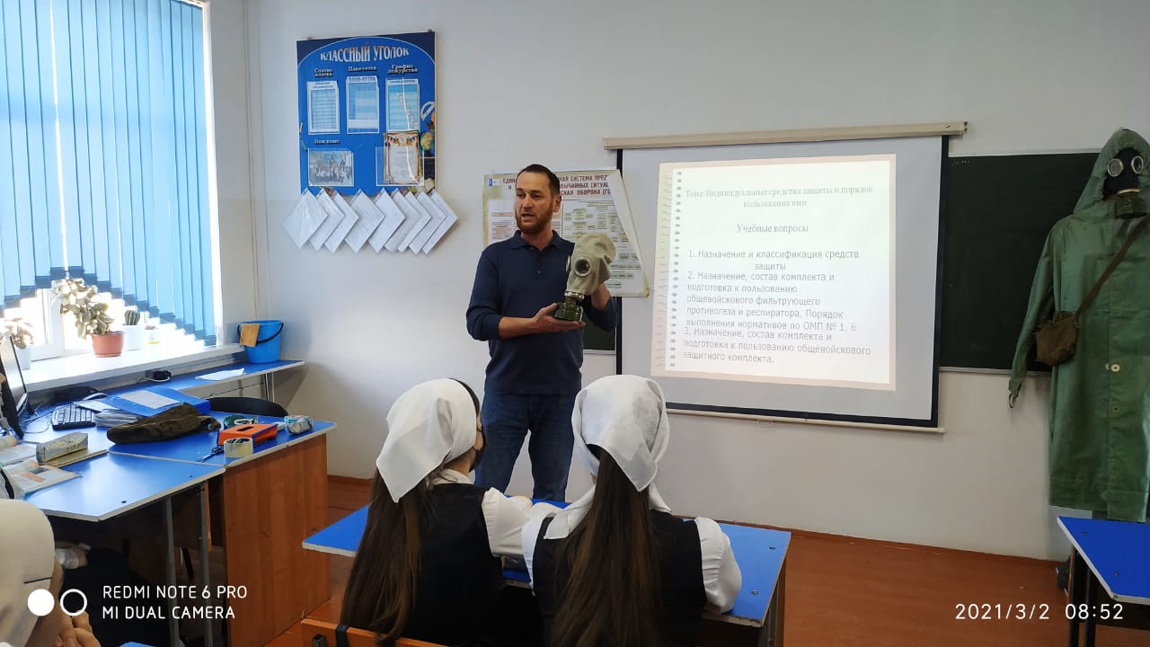 В целях профилактики и доведения информации о правилах безопасного поведения и действиях при возникновении чрезвычайных ситуаций учитель ОБЖ Гельгоев С.Л. провел открытый урок по основам безопасности жизнедеятельности, приуроченный к празднованию Всемирного дня гражданской обороны.