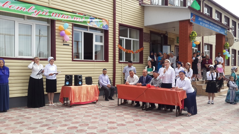 Празднования начались с торжественной линейки. Директор школы Экаева Хеда Исмаиловна поприветствовала ребят в новой для них школе, поздравила их и дала напутствие на будущий учебный год.