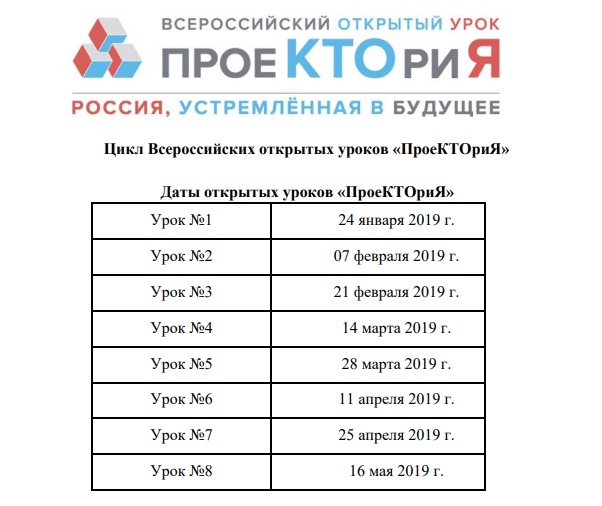 Даты проведения Всероссийских открытых уроков: